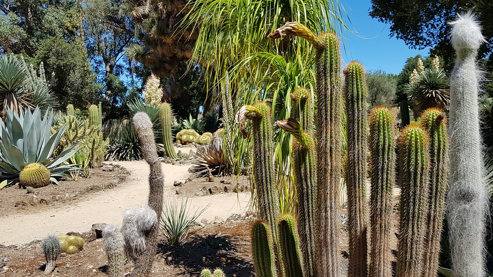 The Arizona Garden—often called the Arizona Cactus Garden—is one of Stanford University’s oldest and most distinctive landscapes. Planted between 1880 and 1883 for Jane and Leland Stanford and designed by landscape architect Rudolf Ulrich, the garden was originally part of the Stanford family estate. Its elegant oval layout, sandy paths, and carefully arranged beds highlight an extraordinary collection of cacti, agaves, aloes, and other drought-tolerant plants from around the world. In a region better known for redwoods and coastal vegetation, the garden stands out as a bold and unexpected tribute to desert beauty .